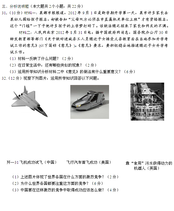 2013年云南昭通中考思想品德真题(图片版)(8)