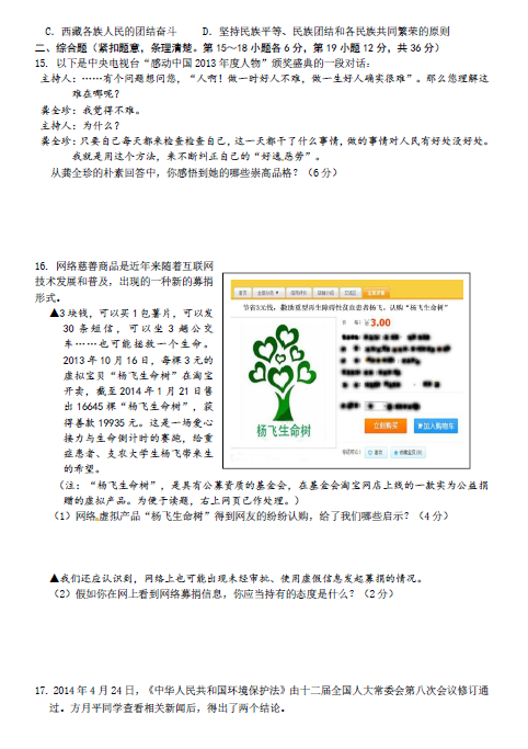 2014年江西吉安中考政治真题(3)