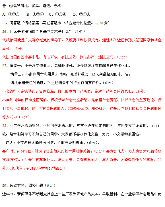 2014年云南临沧思想品德试题答案(图片版)(7)