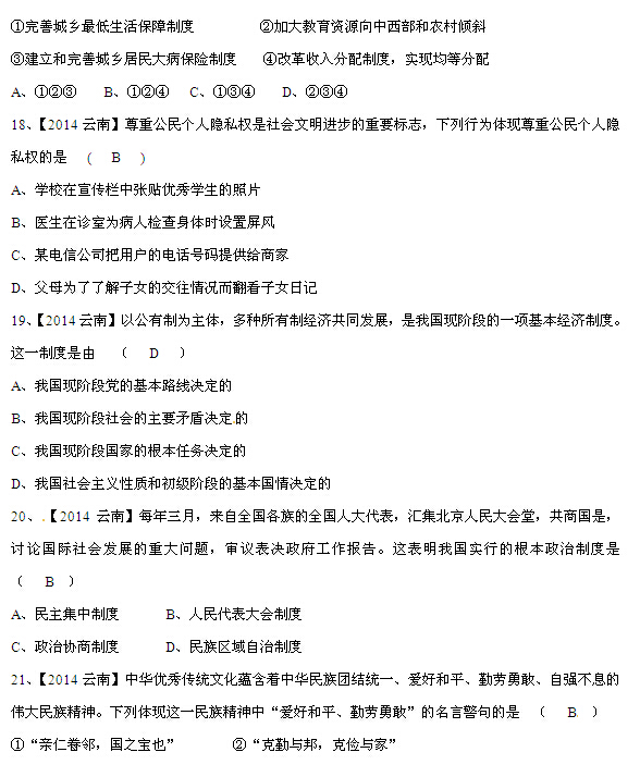 2014年云南楚雄思想品德试题答案(图片版)(5)