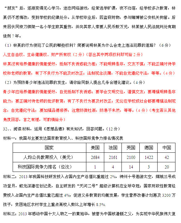 2014年云南楚雄思想品德试题答案(图片版)(9)