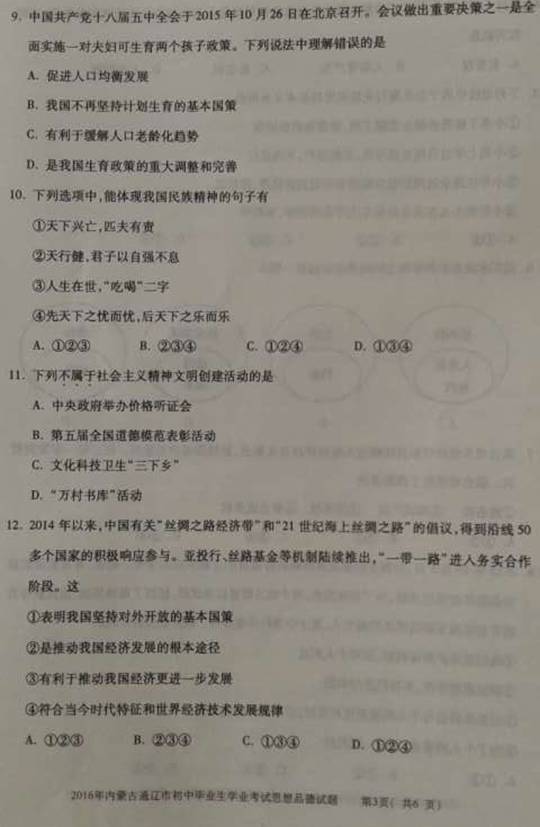 2016年内蒙古通辽中考思想品德试题(图片版)(3)