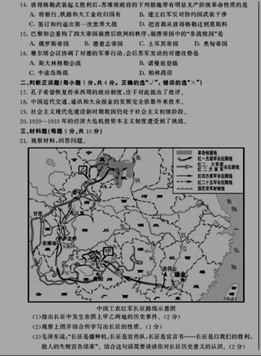 2016年内蒙古呼和浩特中考历史试题(图片版)(3)