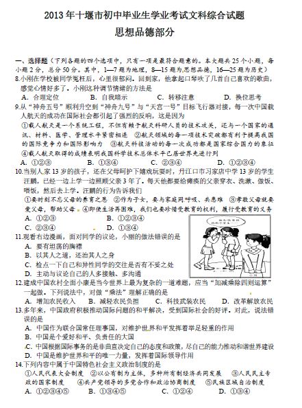 2013年湖北十堰中考政治真题(图片版)
