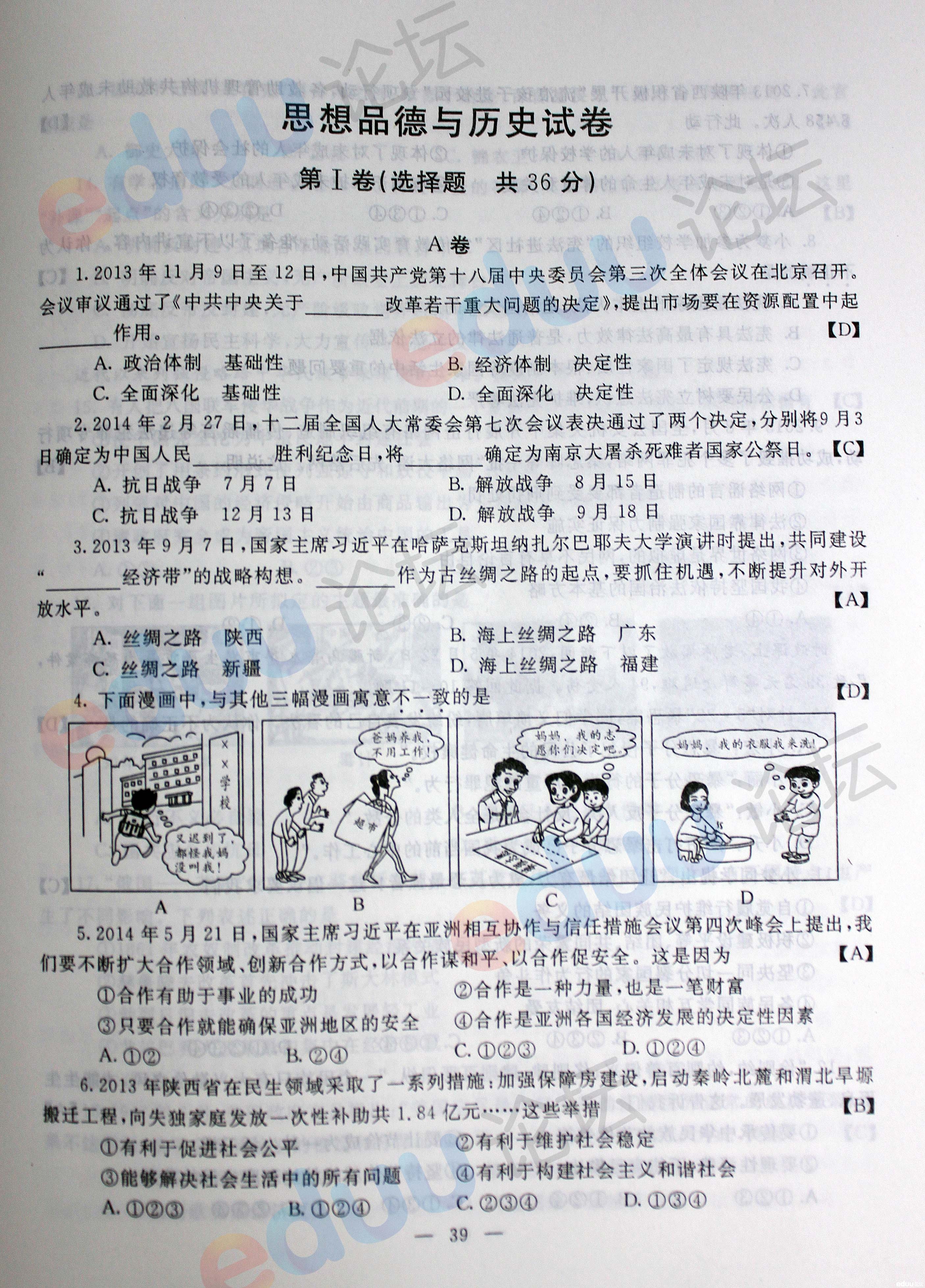 2014年陕西省咸阳中考历史真题答案