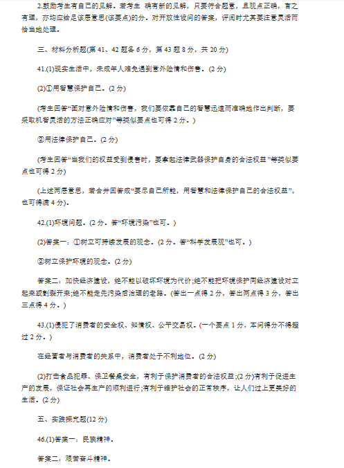 2014年湖北荆州中考政治真题答案(图片版)(2)