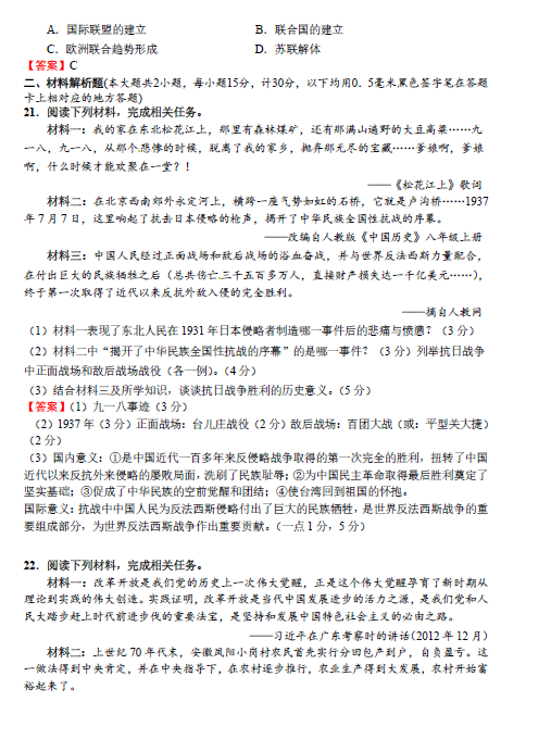 2014年湖北宜昌中考历史真题答案(图片版)(4)