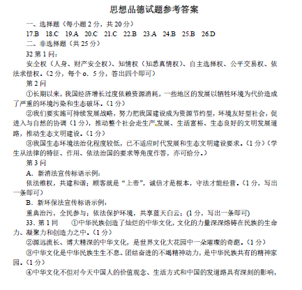 2014年湖北黄冈中考政治真题答案(图片版)