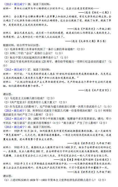 2013年湖北咸宁中考历史真题(图片版)(2)