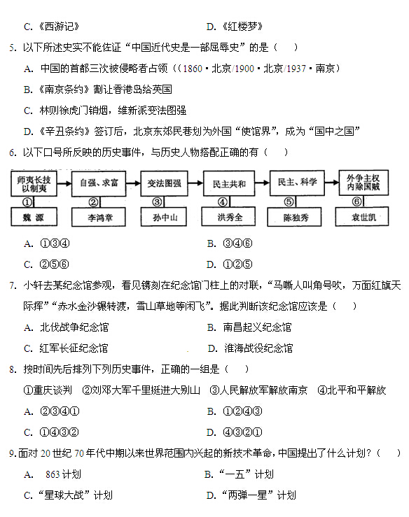 2014年青海西宁中考历史试题(图片版)(2)