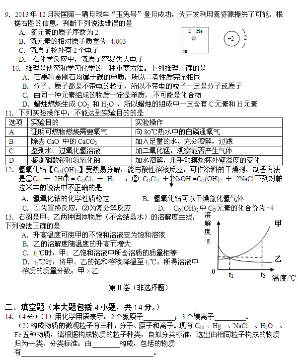 2014年青海西宁中考化学试题(图片版)(2)