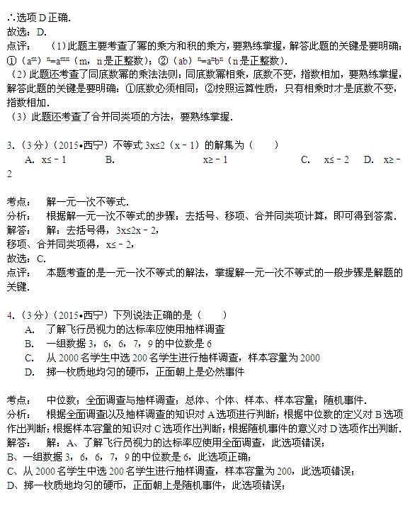 2015年青海西宁中考数学试题答案(图片版)(2)