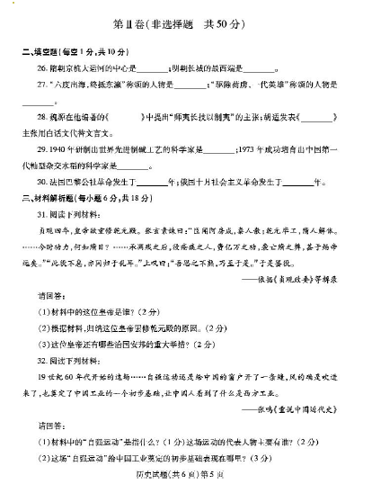 2013年山东聊城中考历史真题(图片版)(5)
