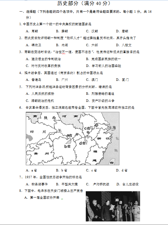 2014年内蒙古呼和浩特中考历史试题(图片版)