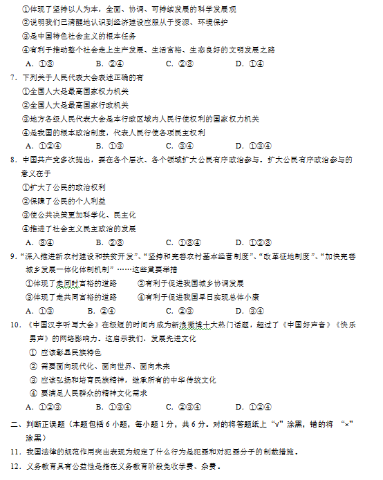2014年内蒙古呼和浩特中考政治试题(图片版)(2)