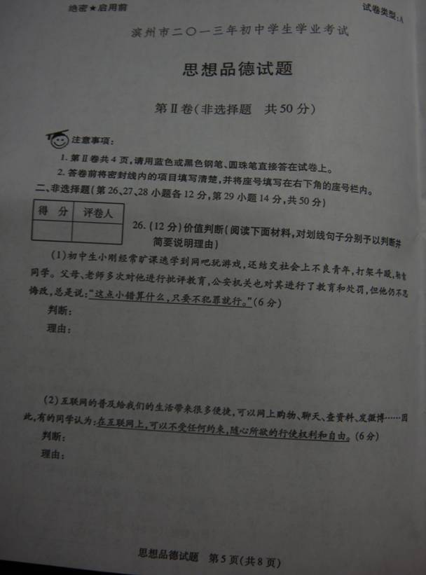 2013年山东滨州中考政治真题(图片版)(5)
