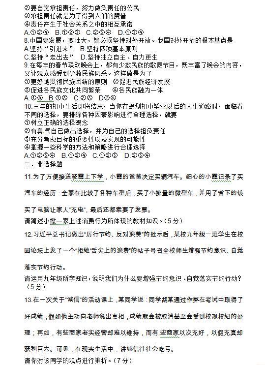 2013年内蒙古包头中考政治试题(图片版)(2)