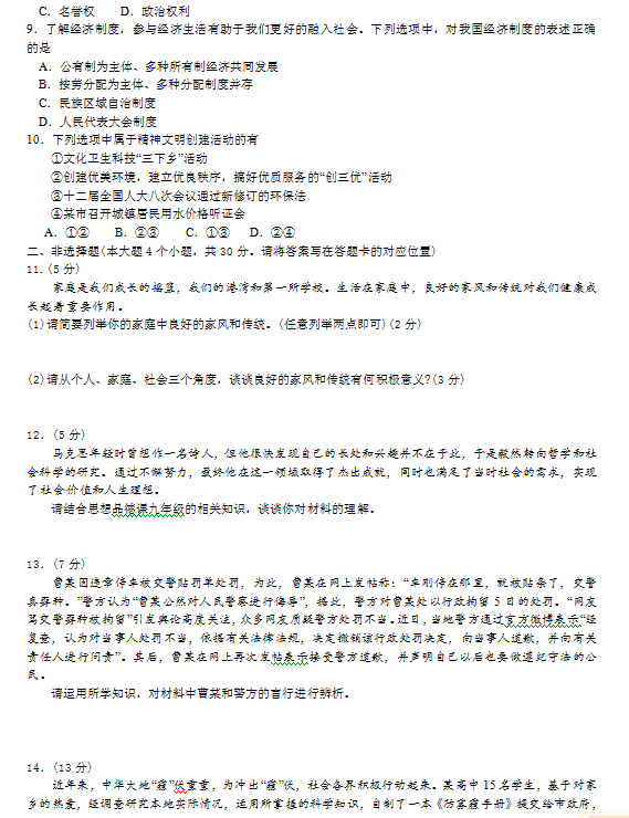2014年内蒙古包头中考政治试题(图片版)(2)