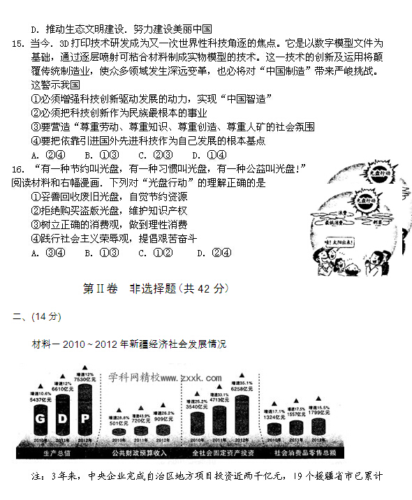 2013年新疆乌鲁木齐中考政治试题(图片版)(4)