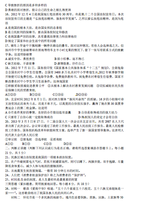 2013年湖南怀化中考政治真题(图片版)(3)