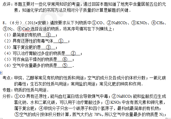 2015年贵州省安顺市中考化学试卷答案(图片版)(8)