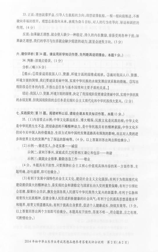 2014年贵州贵阳中考政治真题答案(图片版)(2)