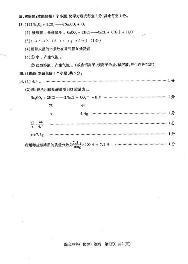 2013年贵州黔东南中考化学真题答案(图片版)(2)