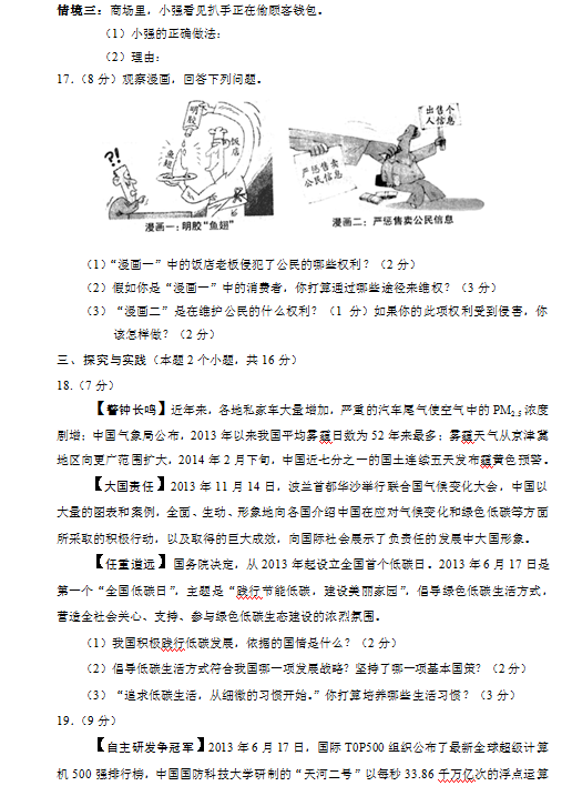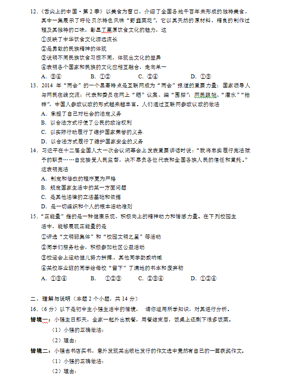 2014年内蒙古呼伦贝尔中考政治试题(图片版)(2)