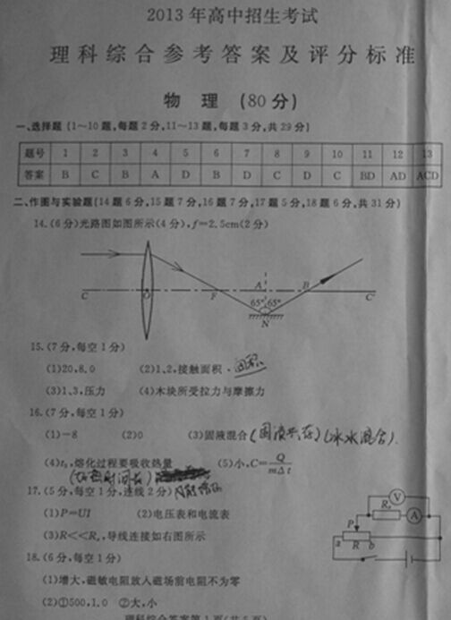 2013年内蒙古巴彦淖尔中考物理试题答案(图片版)