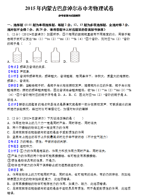 2015年内蒙古巴彦淖尔中考物理试题答案(图片版)