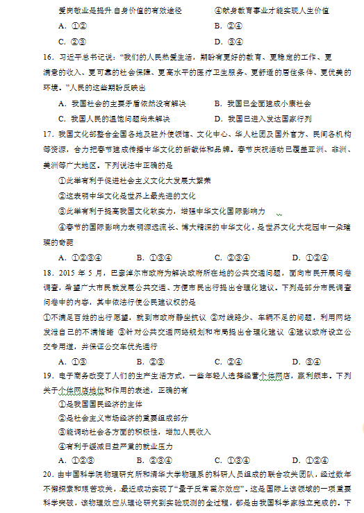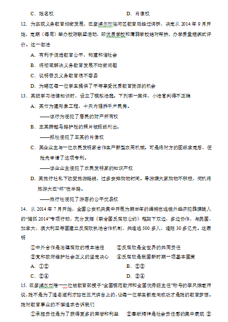 2015年内蒙古巴彦淖尔中考政治试题(图片版)(2)