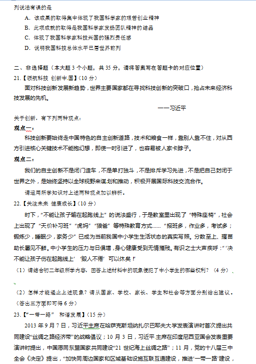 2015年内蒙古巴彦淖尔中考政治试题(图片版)(3)