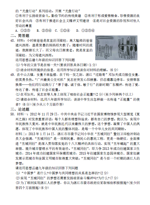 2013年广东湛江中考政治真题(图片版)(4)
