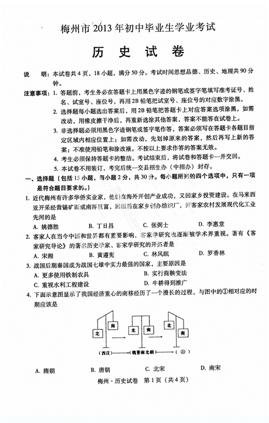 2013年广东梅州中考历史真题(图片版)