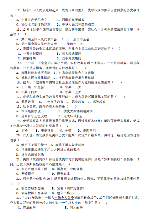 2014年广东揭阳中考历史真题(图片版)(2)