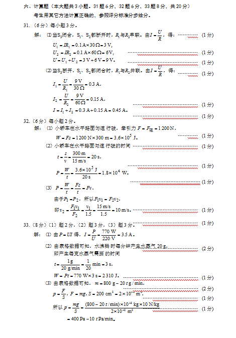 2013年福建厦门中考物理试题答案(图片版)(2)
