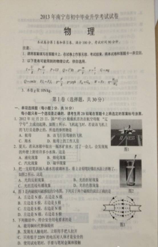 2013年广西南宁中考物理真题(图片版)
