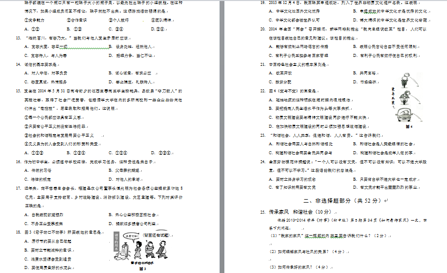 2014年福建南平中考政治试题(图片版)(2)
