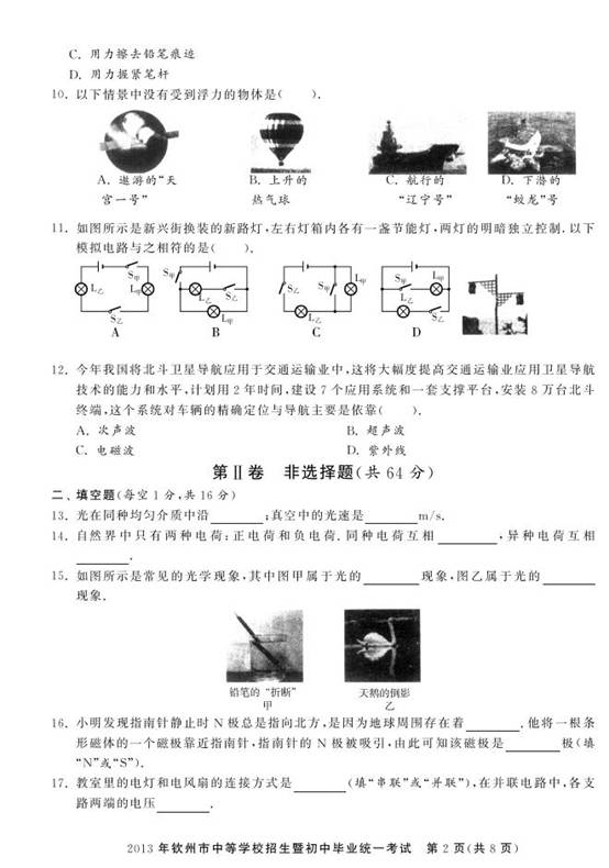 2013年广西钦州中考物理真题(图片版)(2)