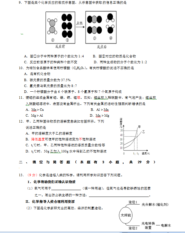 2014年福建泉州中考化学试题(图片版)(2)