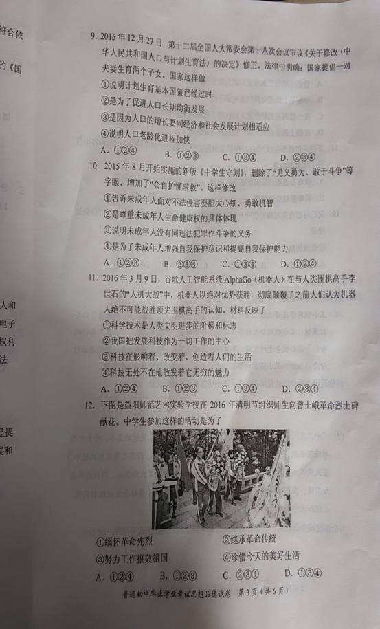 2016年湖南益阳中考思想品德试题(图片版)(3)
