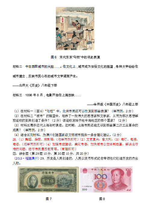 2013年福建漳州中考历史试题答案(图片版)(4)