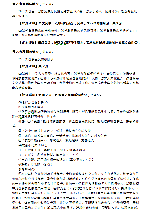 2014年福建漳州中考政治试题答案(图片版)(2)