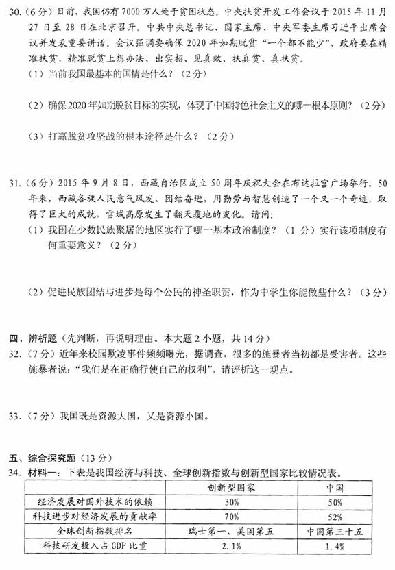 2016年湖南永州中考思想品德试题(图片版)(5)