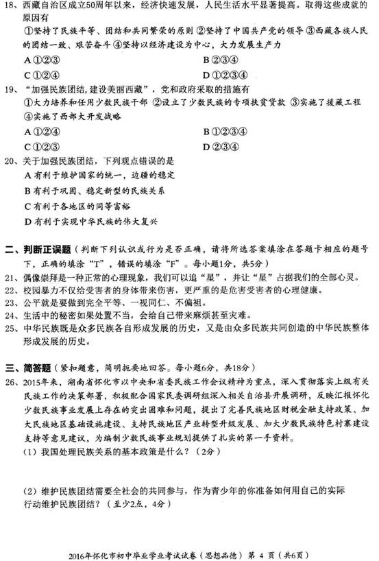 2016年湖南怀化中考思想品德试题(图片版)(4)
