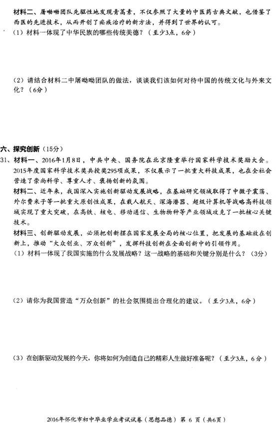 2016年湖南怀化中考思想品德试题(图片版)(6)