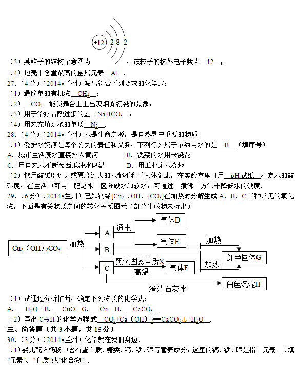 2014年甘肃兰州中考化学试题试题答案(图片版)(7)
