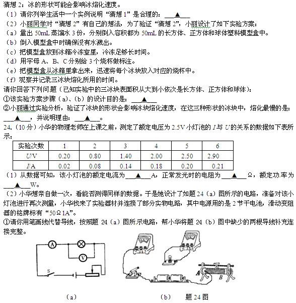 2013年江苏淮安中考物理试题(图片版)(4)