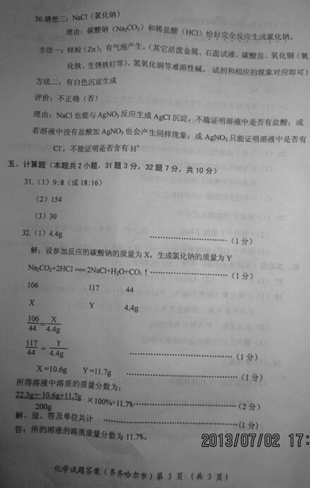 2013年黑龙江齐齐哈尔中考化学题答案(图片版)(3)
