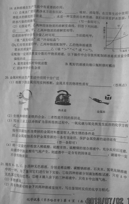 2013年黑龙江齐齐哈尔中考化学题(图片版)(4)